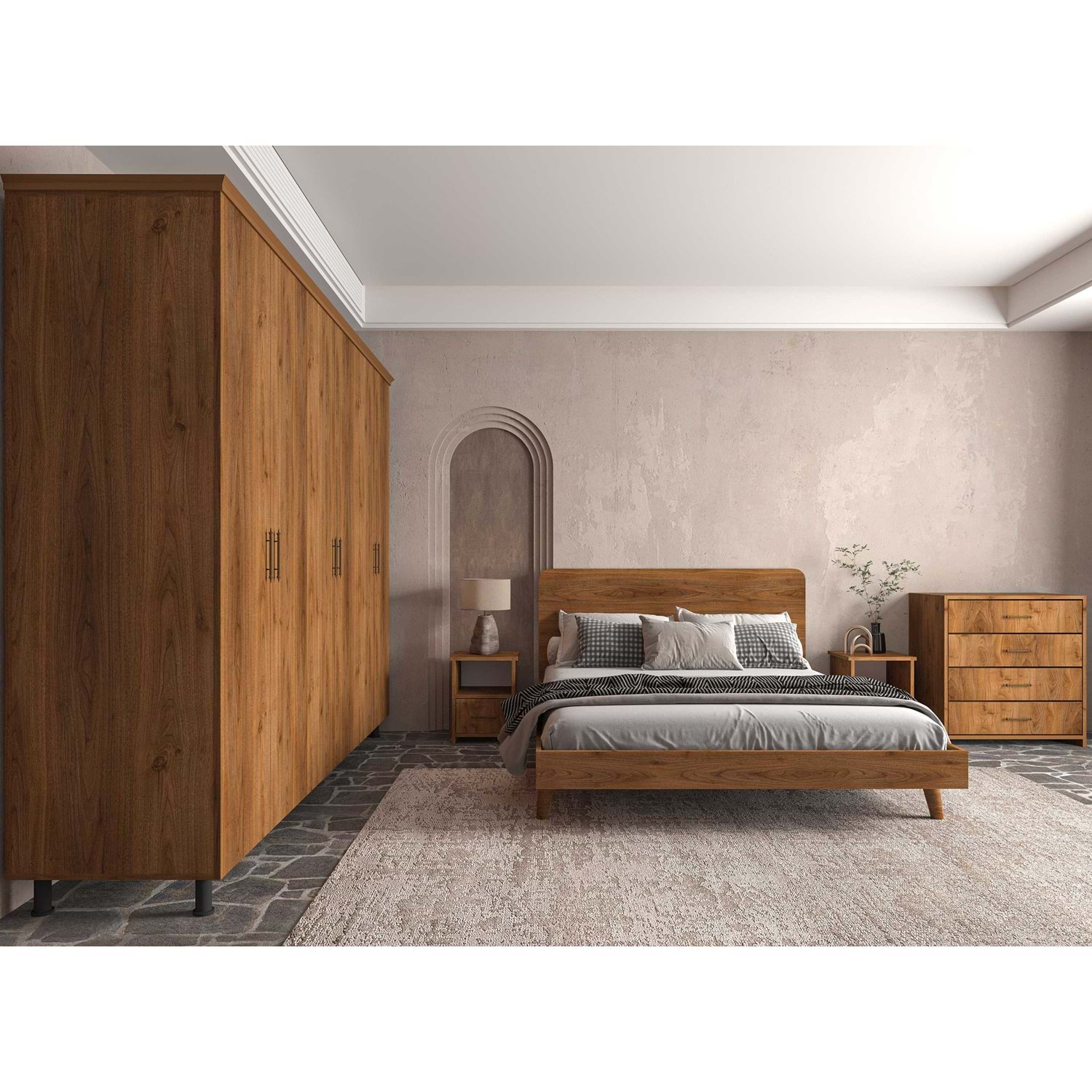 Softwood Ceviz Yatak Odası Seti – Doğal Dokunuşlarla Modern Şıklık