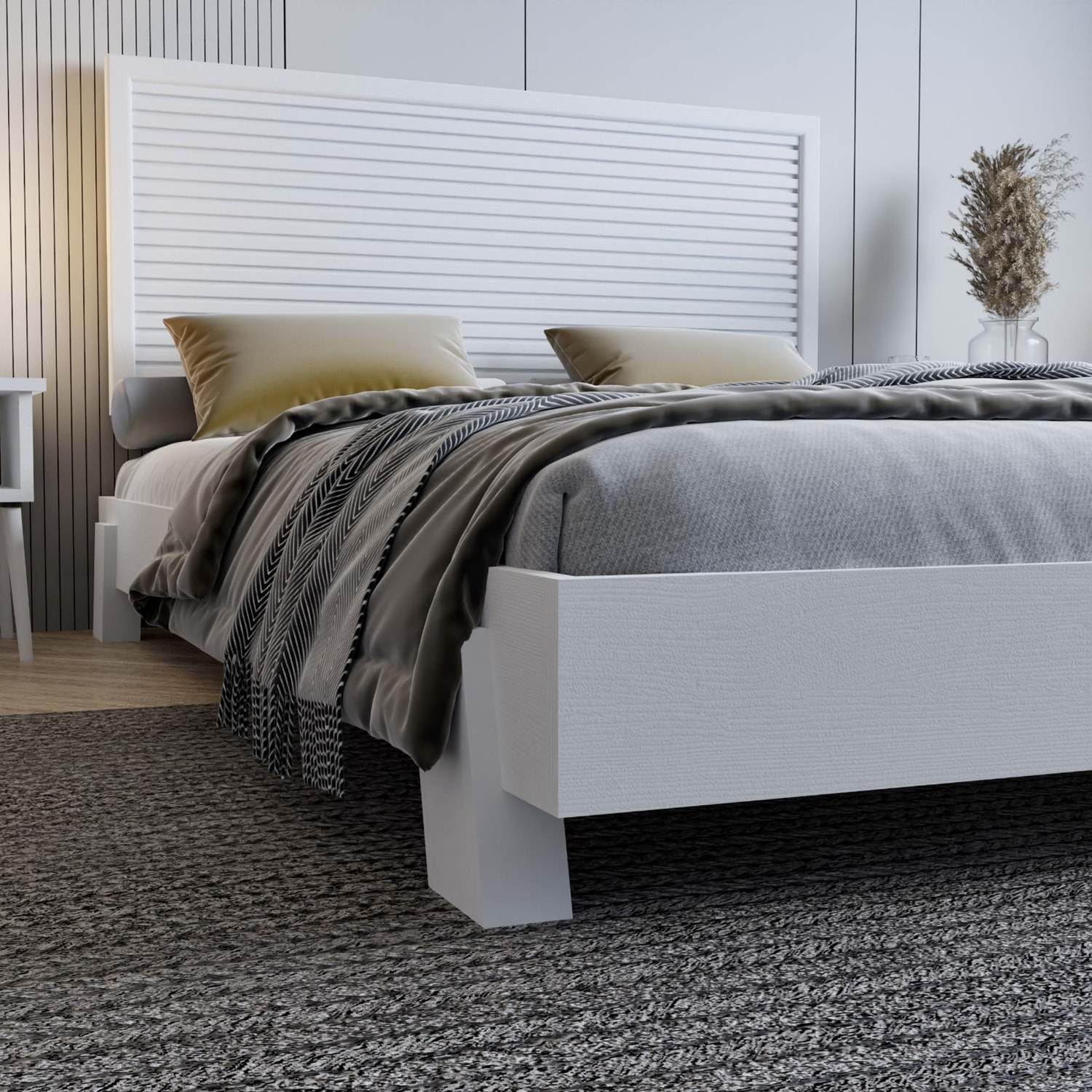 Alaz Model Beyaz Renk Çam Ahşap Karyola ( YTY )