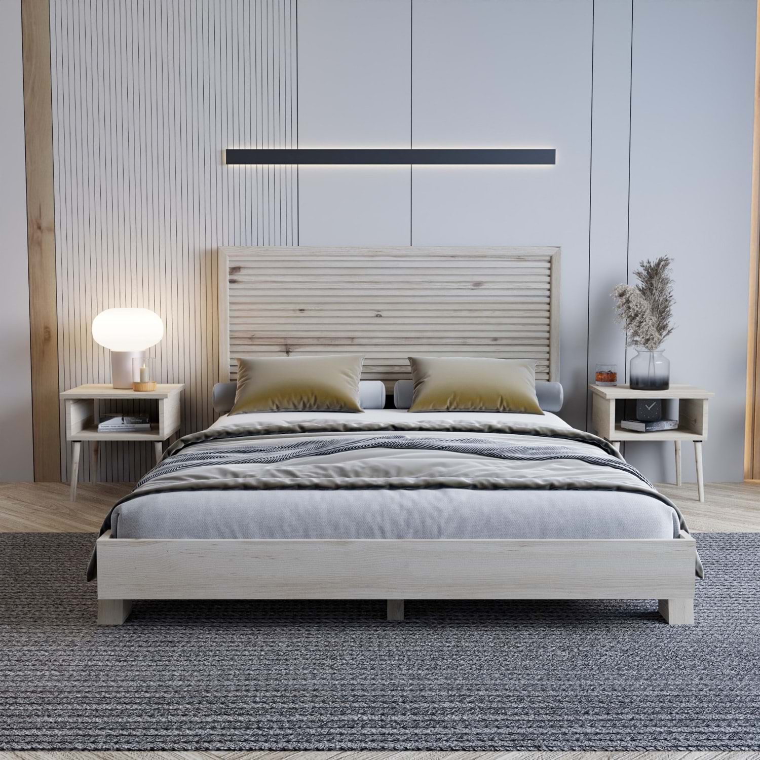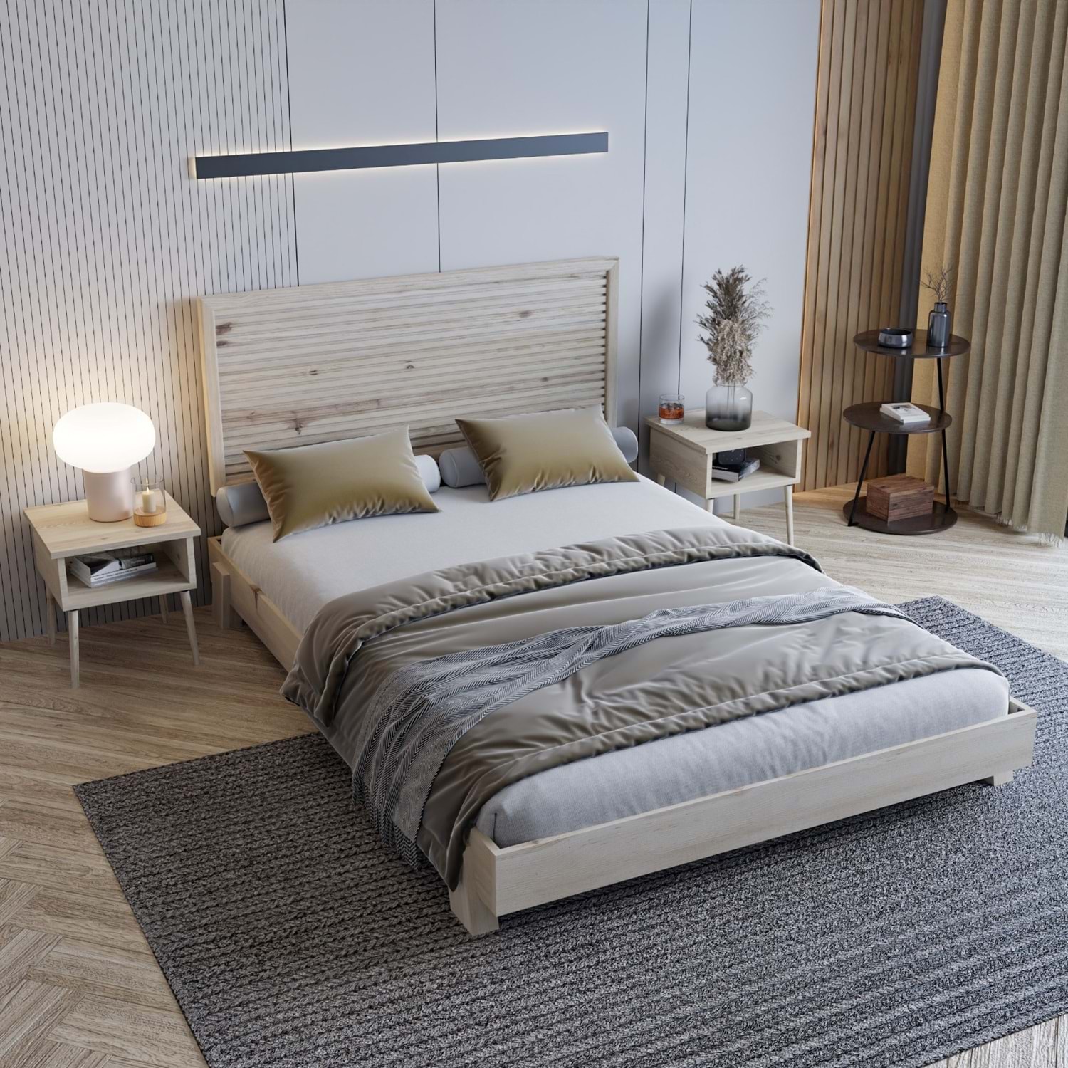 Alaz Model Vernikli Çam Ahşap Karyola ( YTY )
