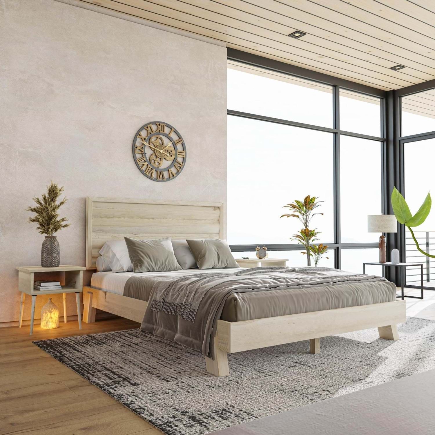 Hüma modeli; ahşabın saflığı ve sıcaklığını bir araya getirerek hem görsel hem de işlevsel bir deneyim sunar. Modern ve sade dekorasyonları sevenler için ideal olan bu set, klasik ve rustik detayları sayesinde yatak odanızı bir yuvaya dönüştürecektir. Komodinlerdeki kompakt yapı dar alanlara bile kolayca sığacaktır.