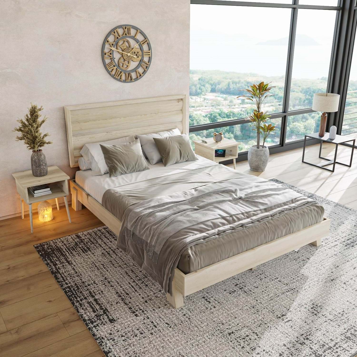 Hüma Model, sade ve modern tasarımıyla her dekorasyon tarzına kolayca uyum sağlar. Başlıktaki tasarım detayı ile öne çıkan başlığı, yatak odasına ışık ve zarafet katar. Yerden yüksek yapısıyla temizlik kolaylığı sunarken, çam oluşuyla odanıza doğallı getirecektir.