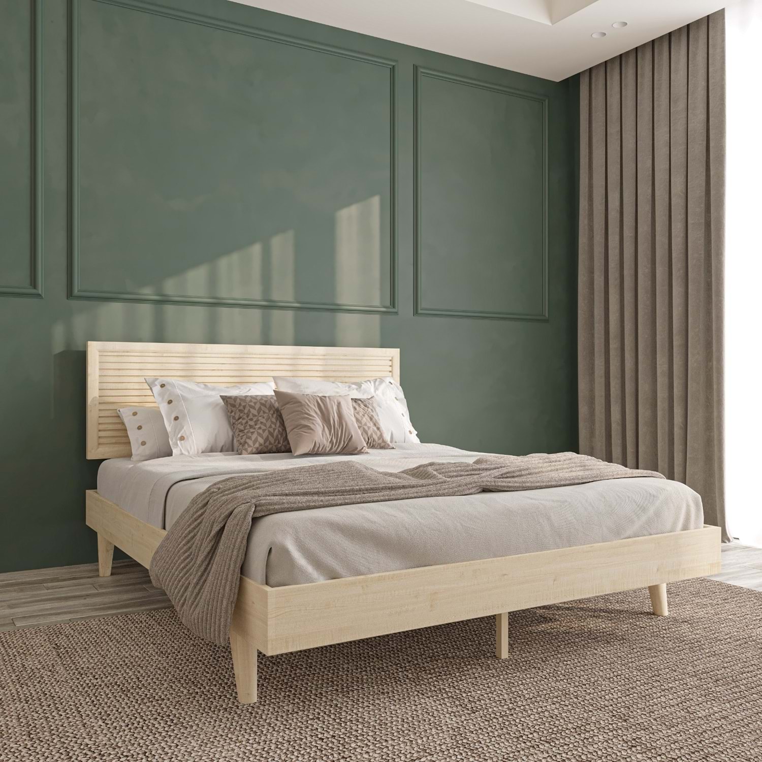 Sade ve zarif tasarımı, doğal malzeme kullanımı ve sağlam yapısıyla Hürrem karyola, hem göze hitap eder hem uzun ömürlü kullanım sağlar. Geleneksel dokuyu modern bir yatak odası düzeniyle birleştirmek isteyenler için idealdir.