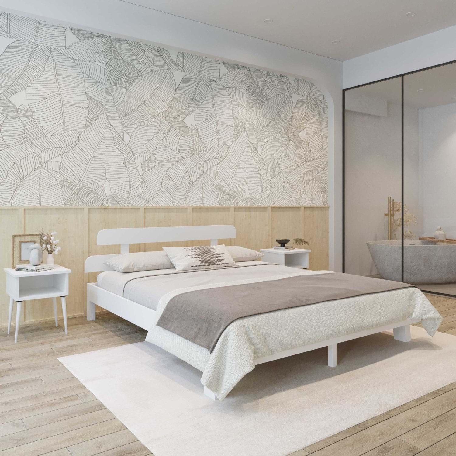 Lotus New Model Beyaz Renk Ahşap Karyola Ve İki komodin Set