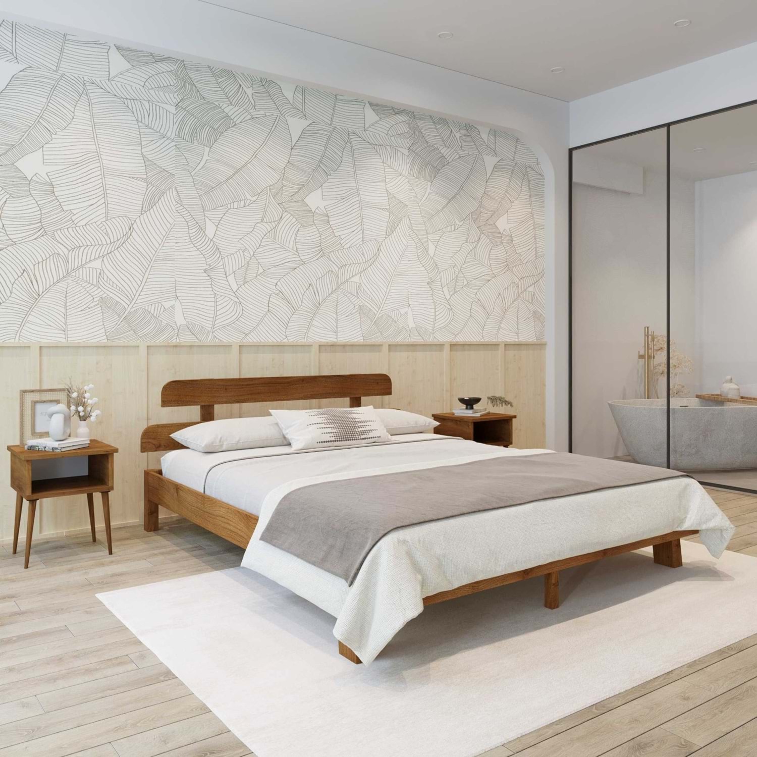 Lotus New Model Ceviz Renk Ahşap Karyola Ve İki komodin Set