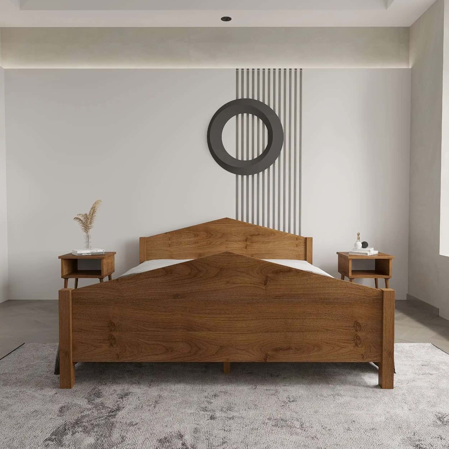 Milano Model Ceviz Renk Çam Ahşap Karyola Ve İki Komodin Set