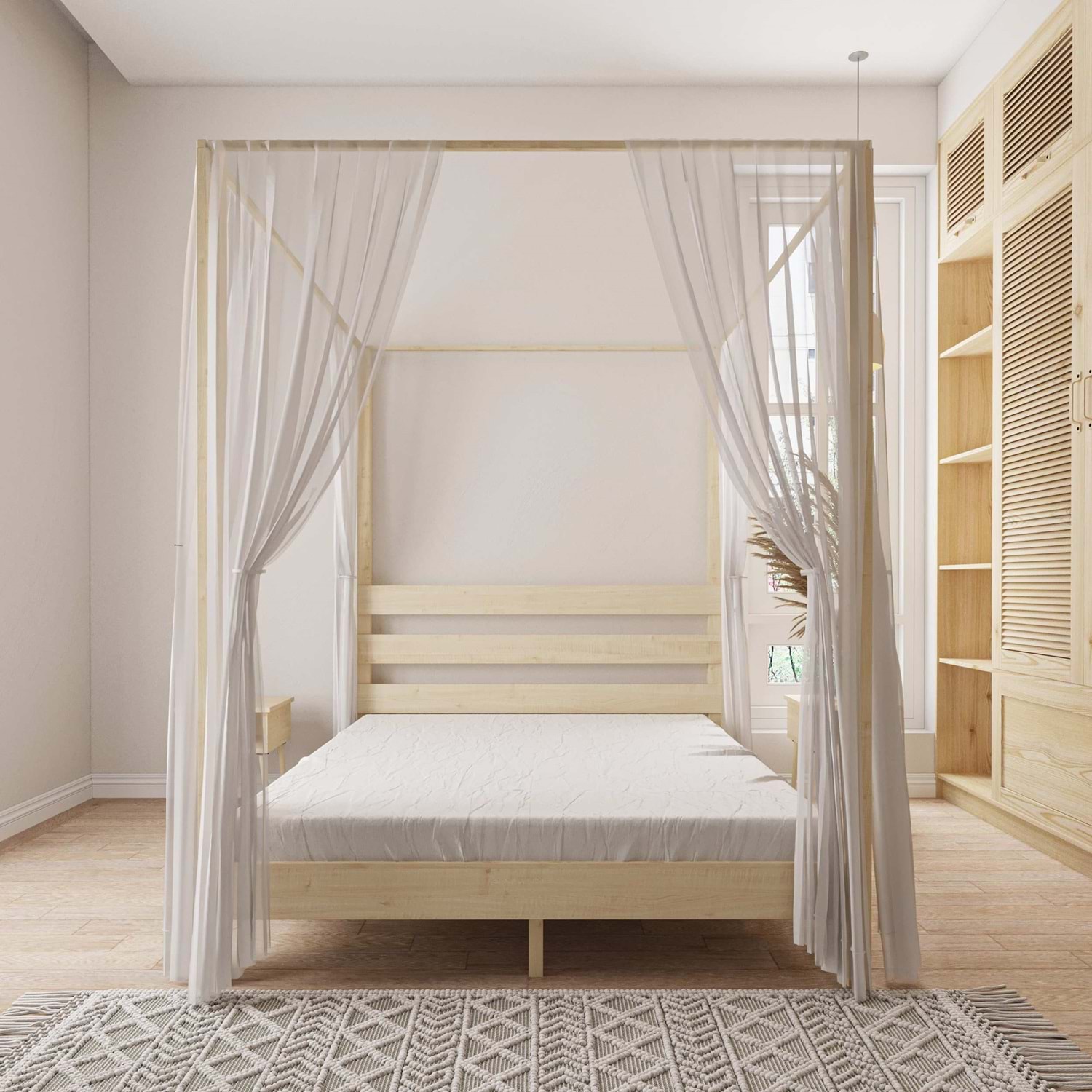 Natura Model Cibindirik Askılıklı Doğal Çam Ahşap Karyola