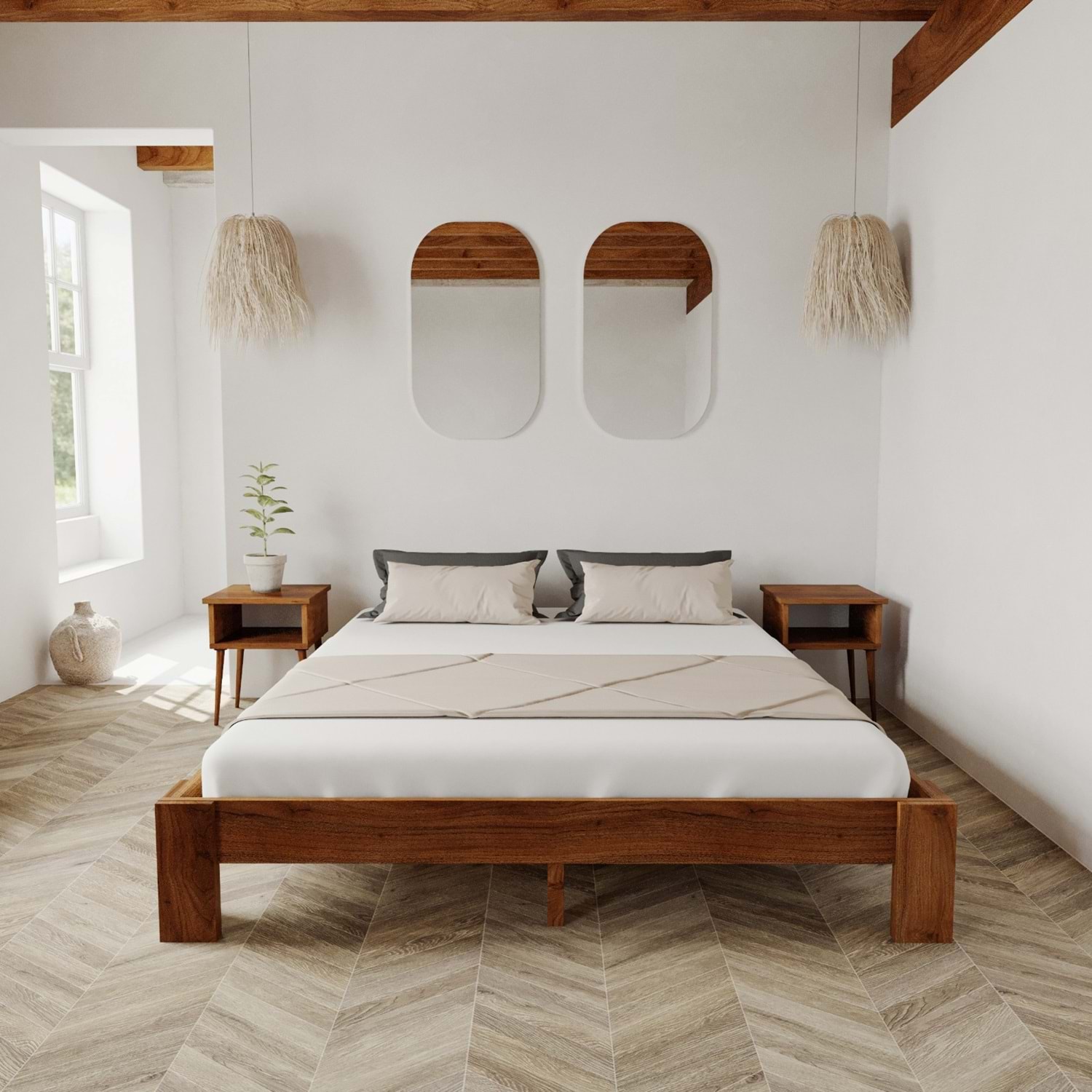 Soft Model Ceviz Renk Çam Ahşap Karyola Ve İki Komodin Set