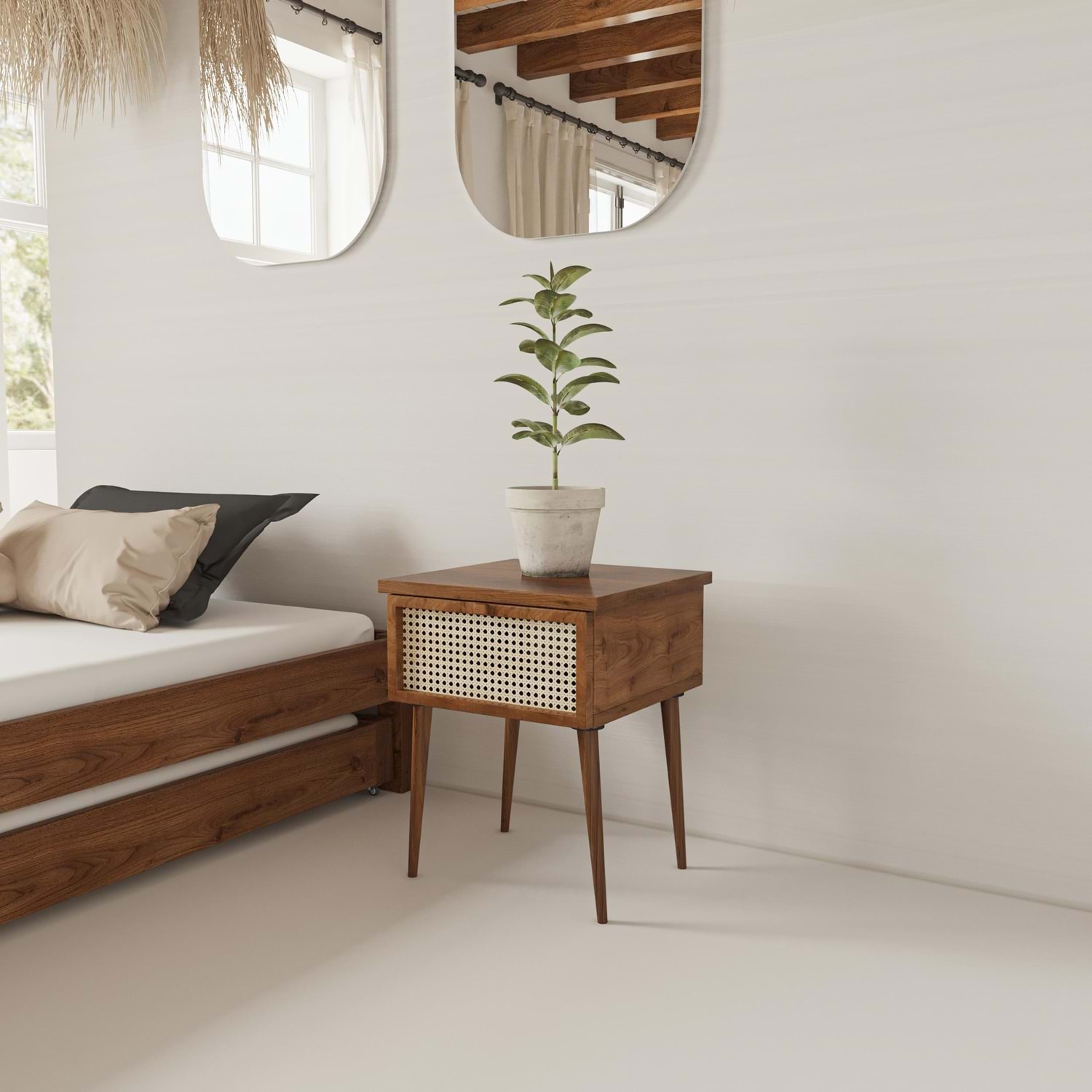Hazeran Model Ceviz Renk Ahşap Komodin