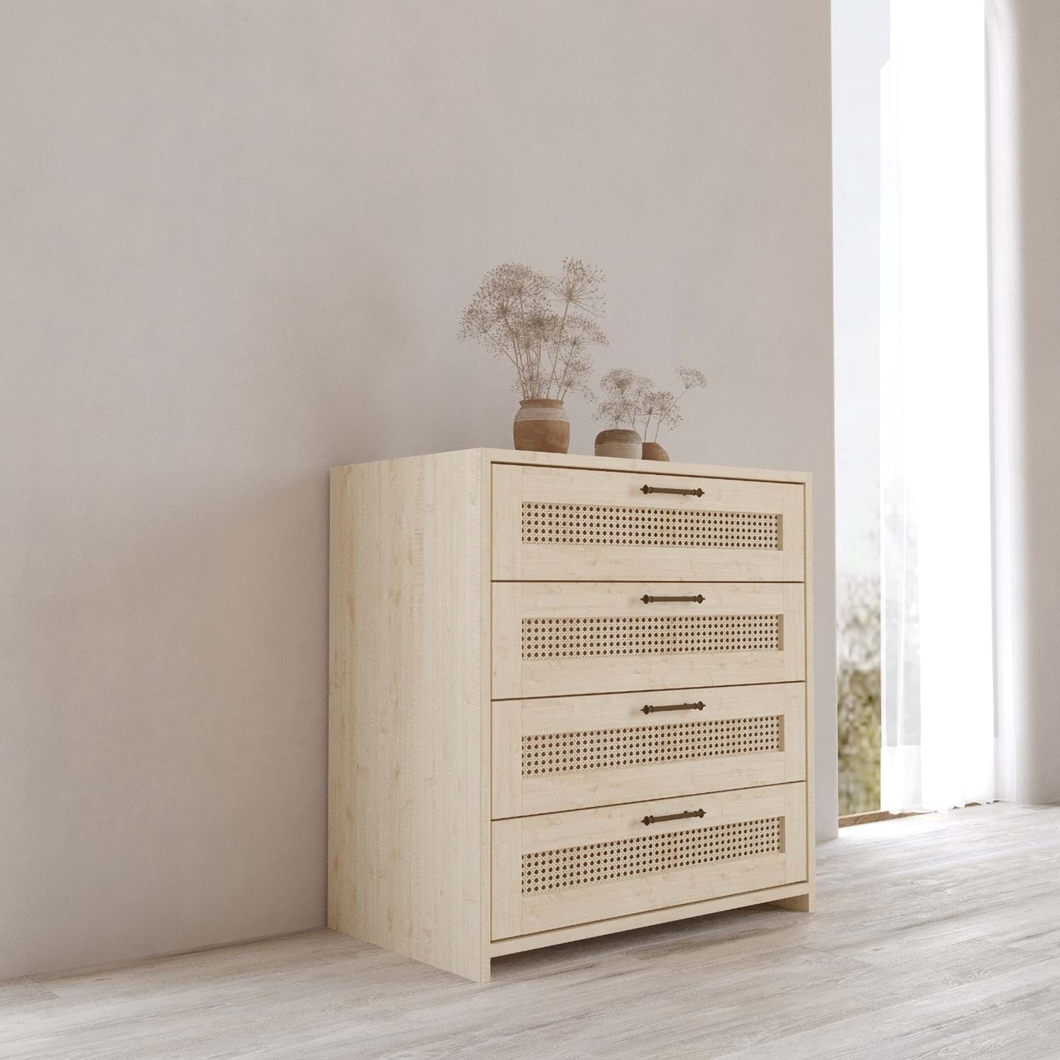 Padova Vernik Hazeran 4 Çekmeceli Şifonyer – Doğallığın Zarafeti ve Çok Amaçlı Depolama Alanı