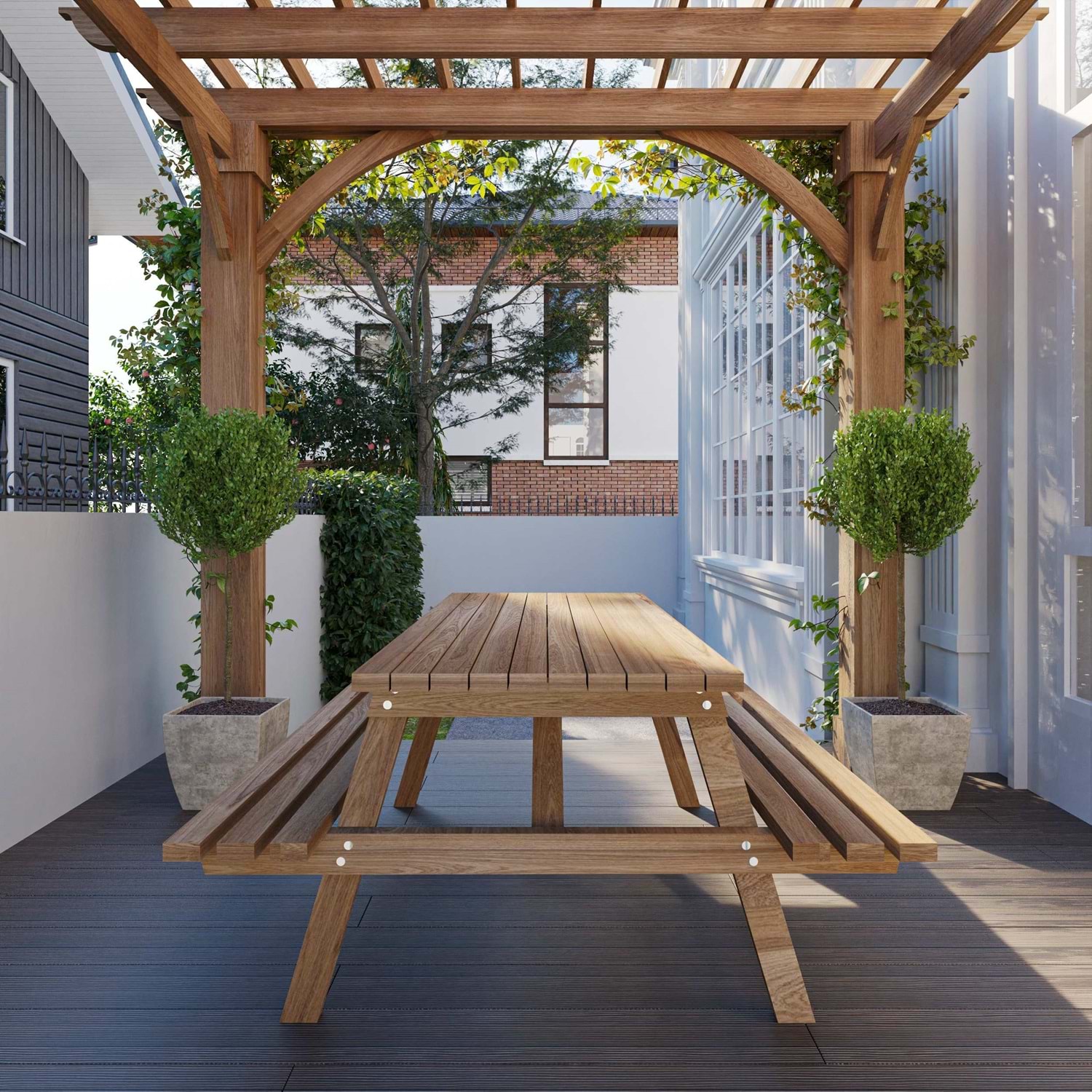 Masif ahşap piknik masamız ithal fırınlanmış çam ağacından üretilmektedir.
