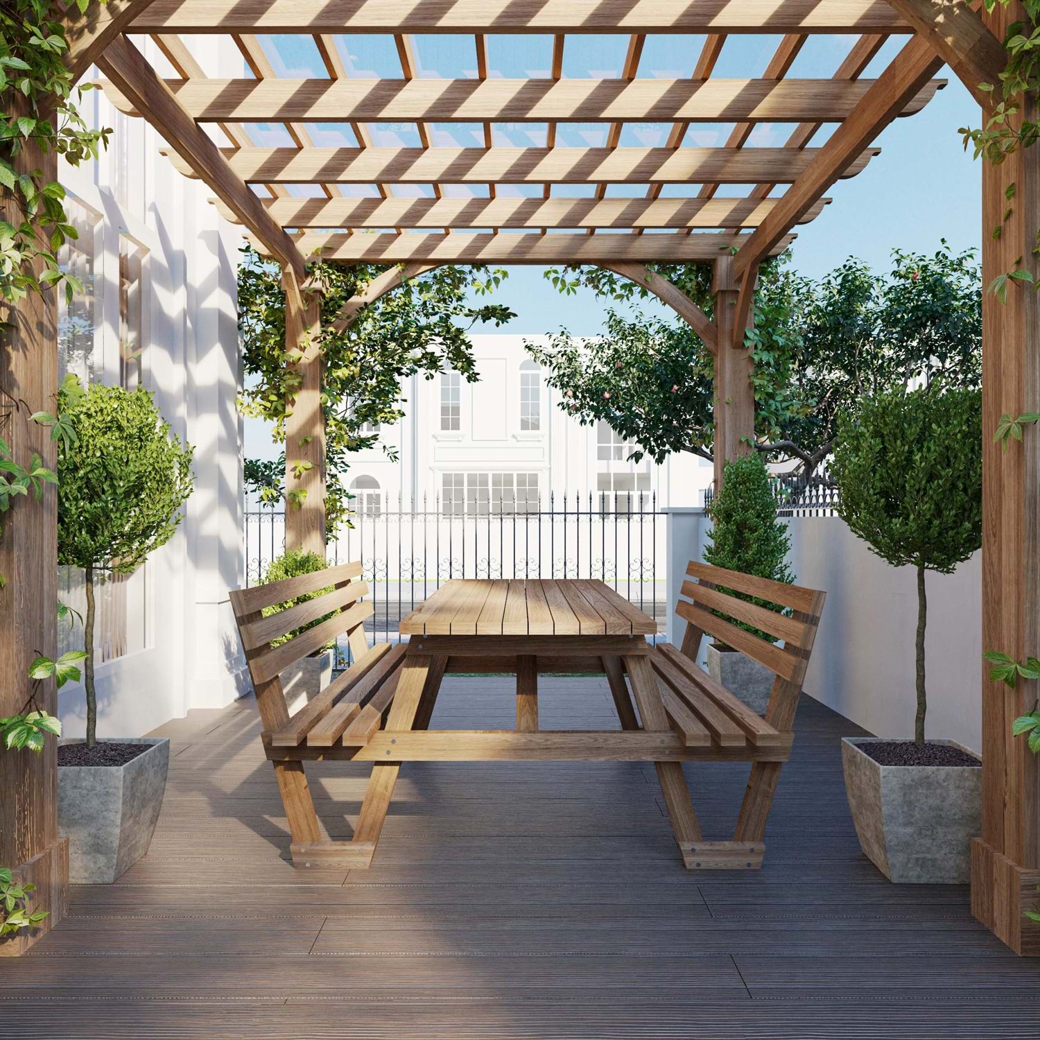 Sırt Destekli Fındık Renk Ahşap Piknik Masası 6 kişilik