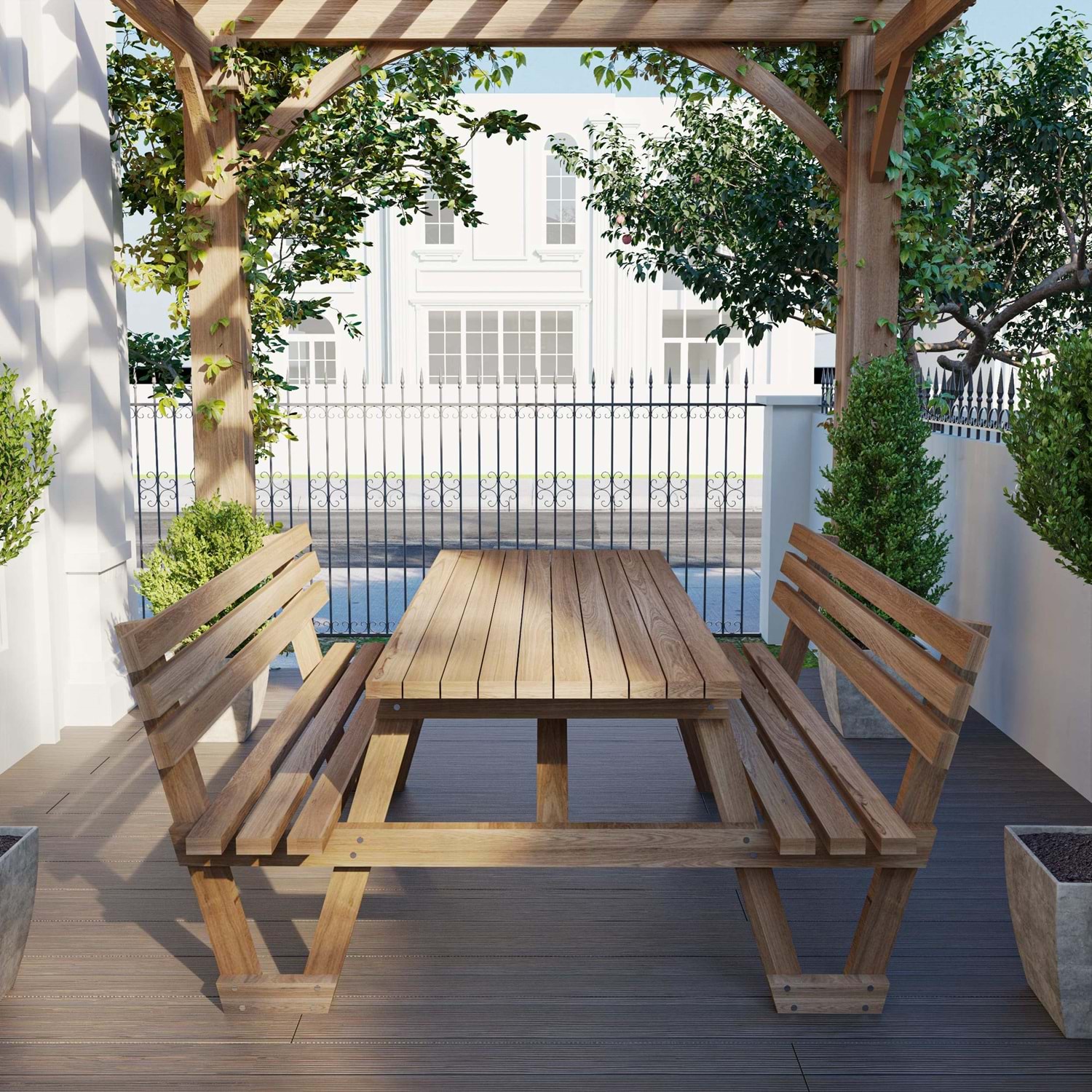 Masif ahşap piknik masamız ithal fırınlanmış çam ağacından üretilmektedir.