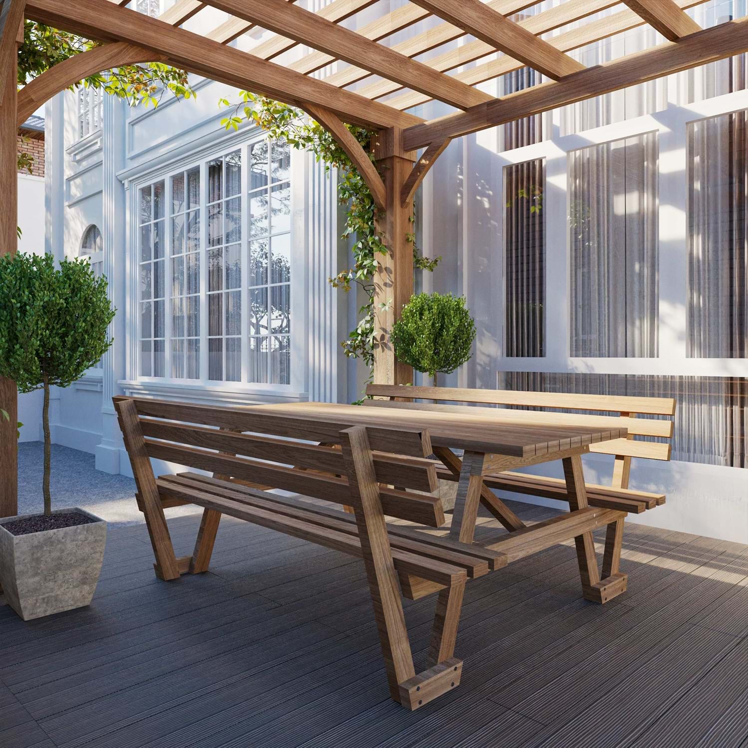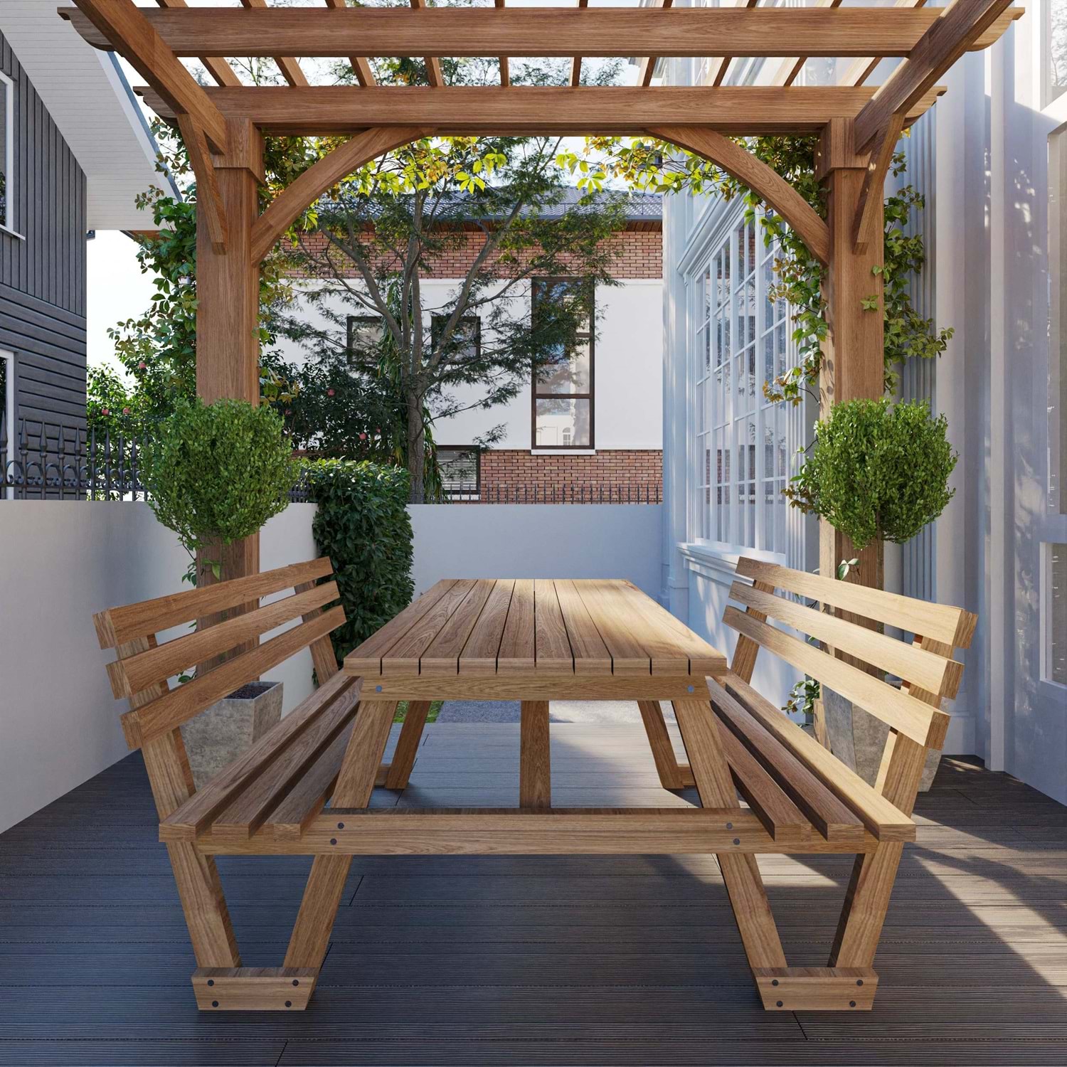 Masif ahşap piknik masamız ithal fırınlanmış çam ağacından üretilmektedir.