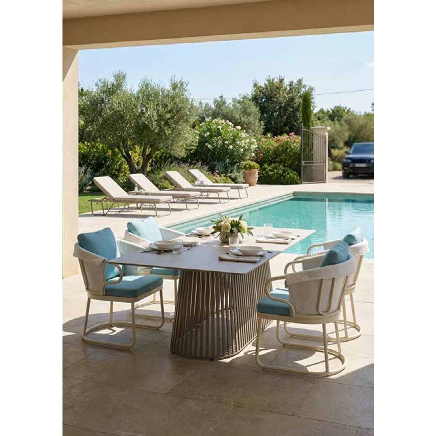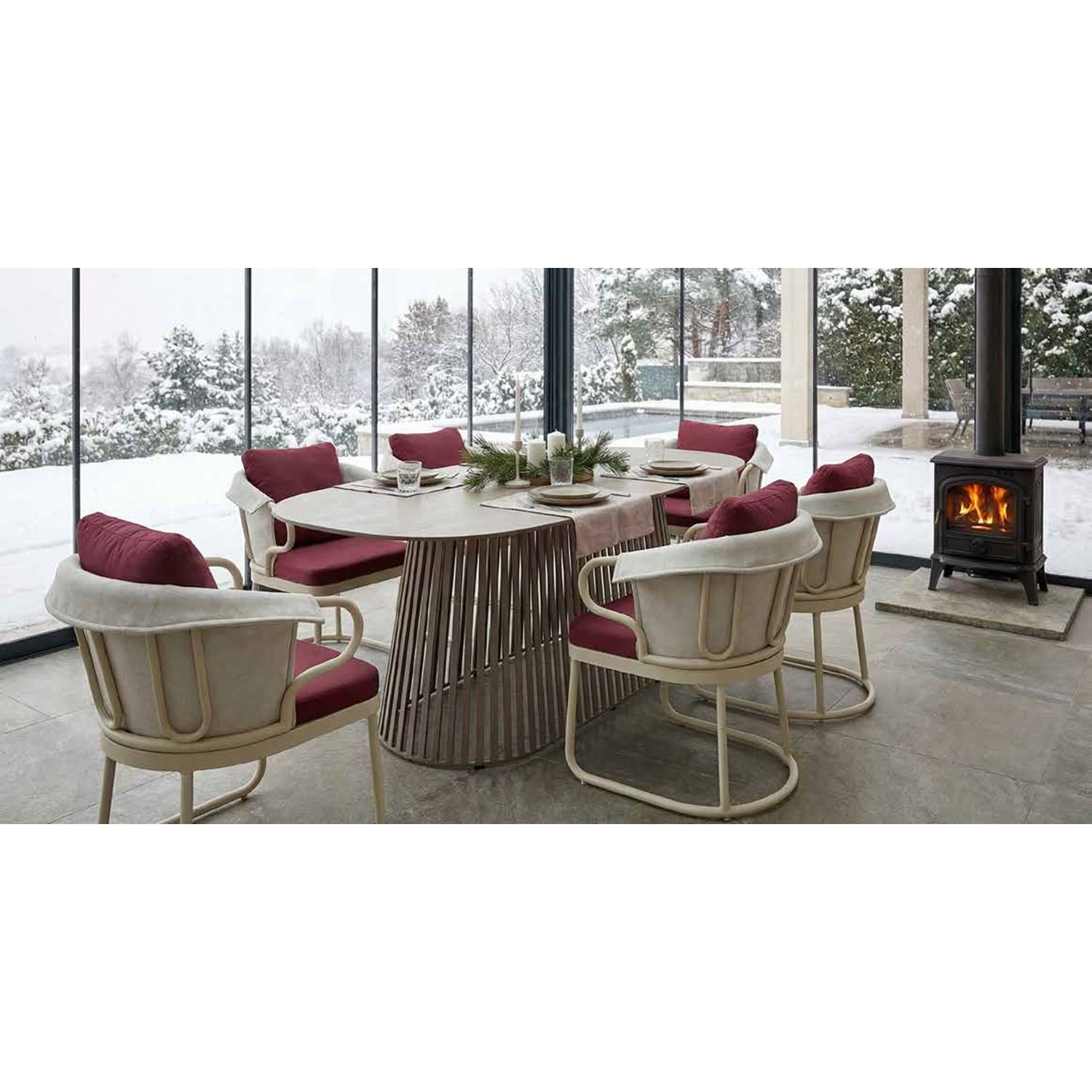 İşletme Dostu Dayanıklılık: Renazzo Mobilya güvencesiyle kullanılan su itici, leke tutmaz ve UV dirençli dış mekan kumaşları, yoğun ticari kullanımda bile ilk günkü formunu korur.