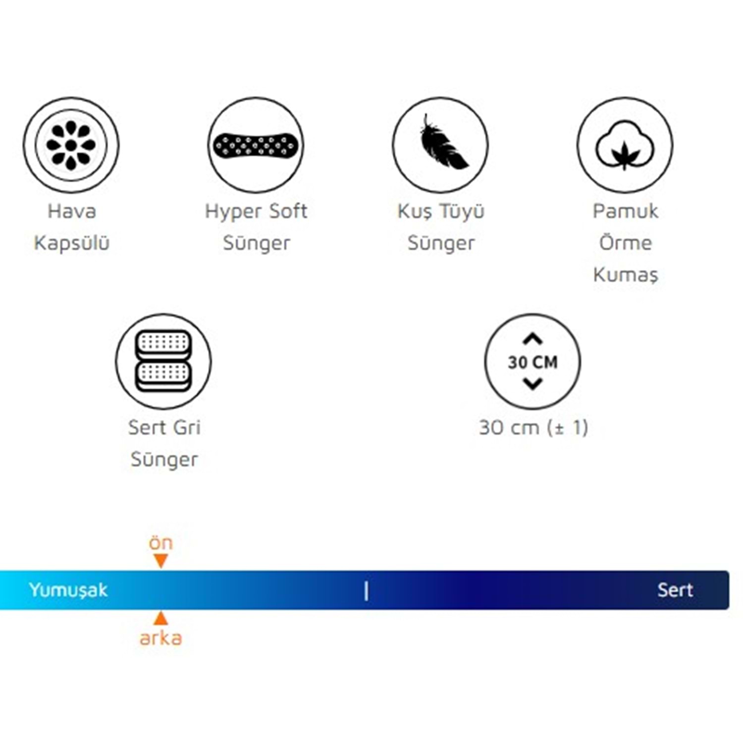 Yüksek yoğunluklu sert yapısı ile formunu uzun yıllar korur. Vücut ağırlığı altında çökme ve ezilmeye karşı dirençlidir.